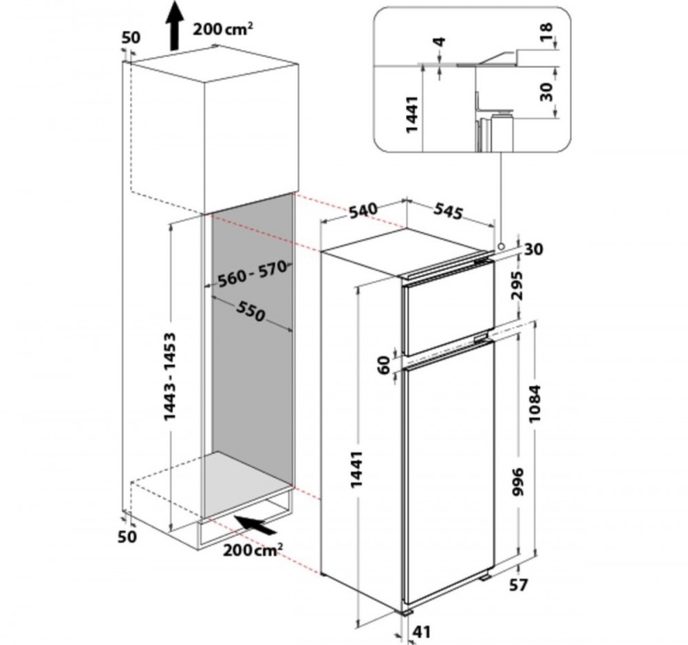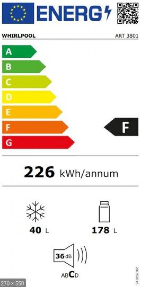 Whirlpool ART 3801 Beépíthető felülfagyasztós hűtőszekrény